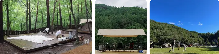 - 장점: 텐트 설치 편리, 쾌적한 분위기