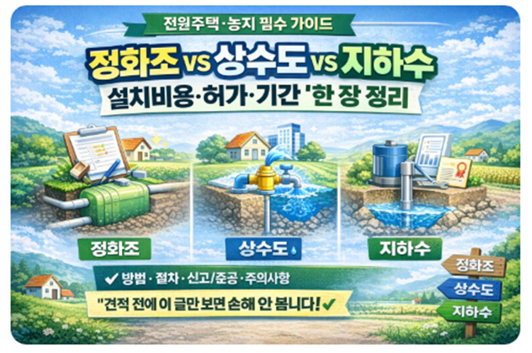 - 1순위: 상수도 + 정화조(또는 하수관로 연결)